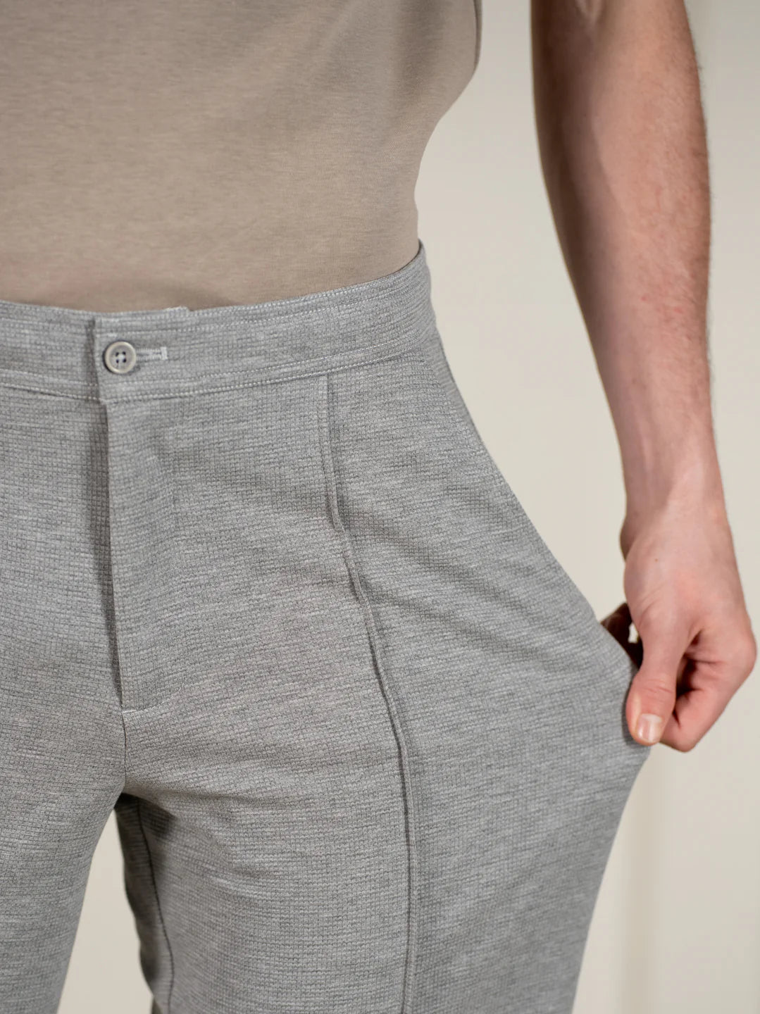 The combination of stretchable fabric and a dynamic waistband provides a tailored look without compromising on comfort, creating a refined yet functional garment suitable for a wide range of activities.