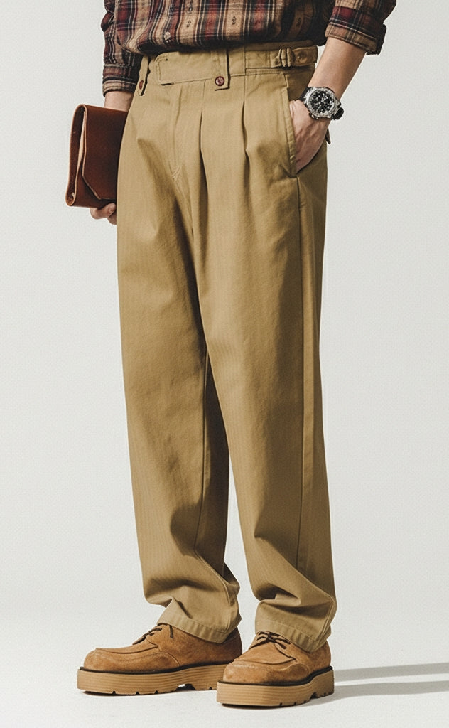Herringbone Pattern Naples Casual Pants in Camel Yellow