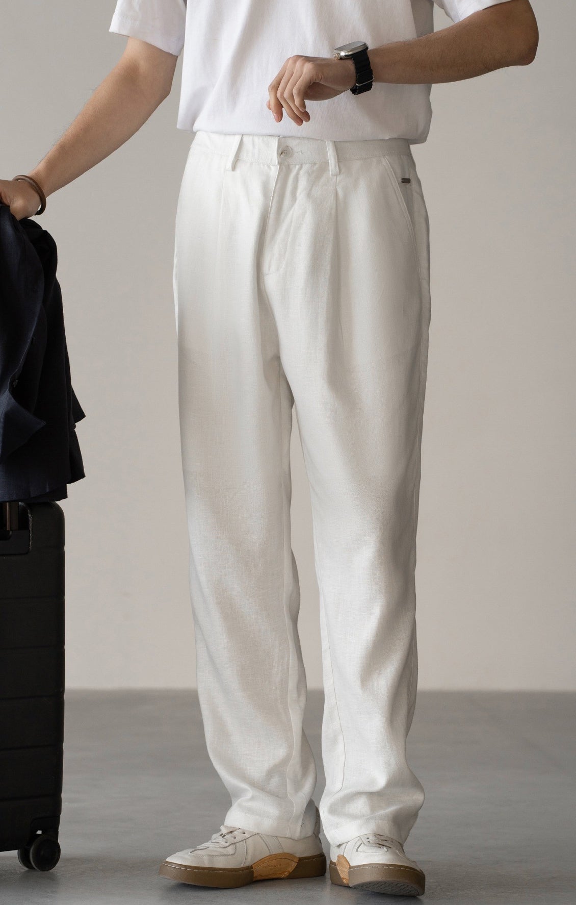 Their innovative construction includes a specially designed waistband that features an integrated elastic ribbon, allowing the waist to expand and contract seamlessly with the wearer’s body. This engineered waist not only enhances fit and flexibility but also helps the trousers maintain their shape throughout the day. The combination of stretchable fabric and a dynamic waistband provides a tailored look without compromising on comfort, creating a refined yet functional garment suitable for a wide range of activities.